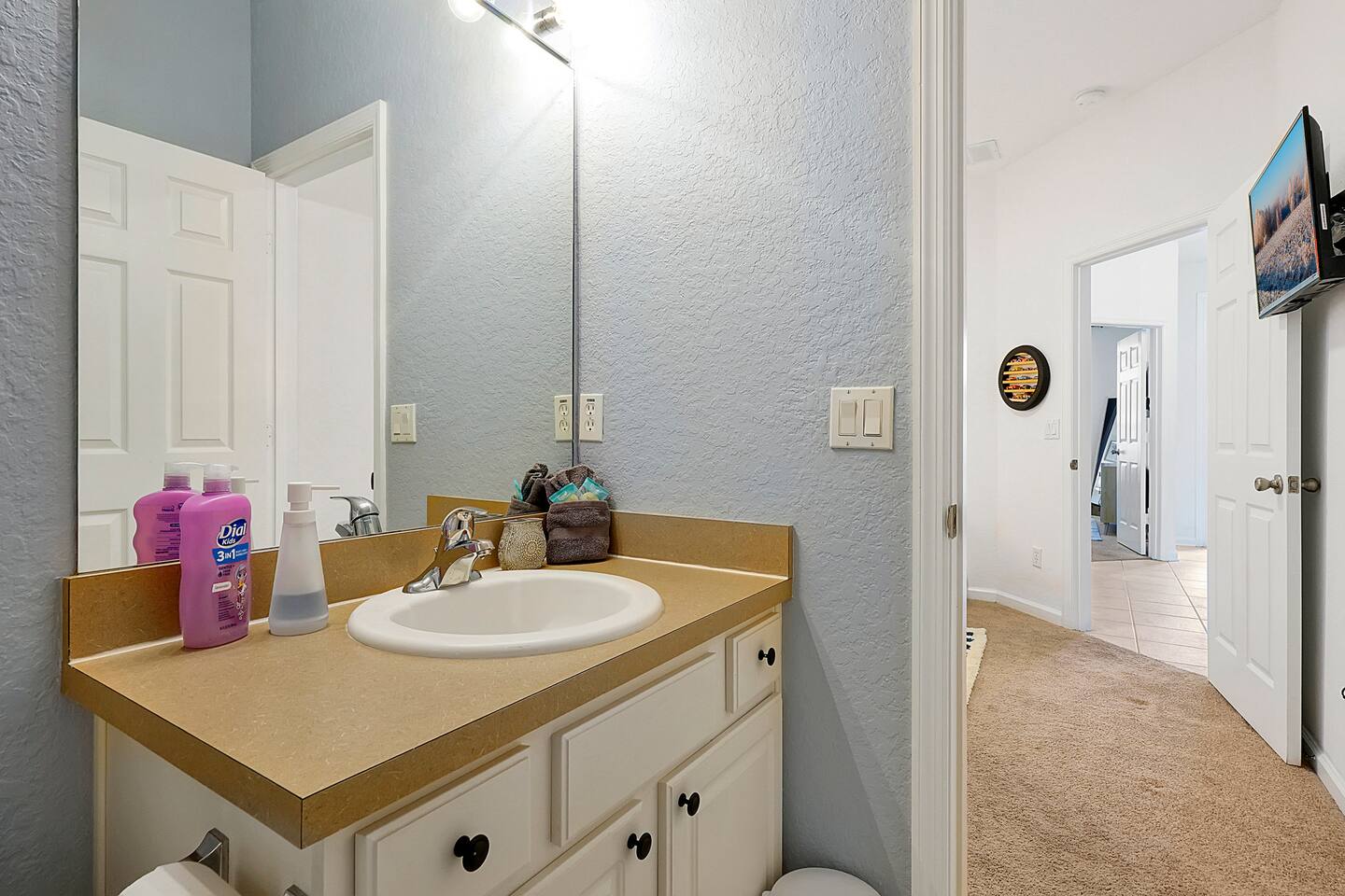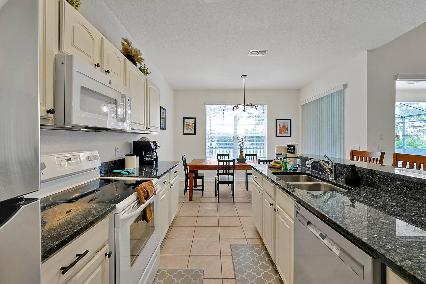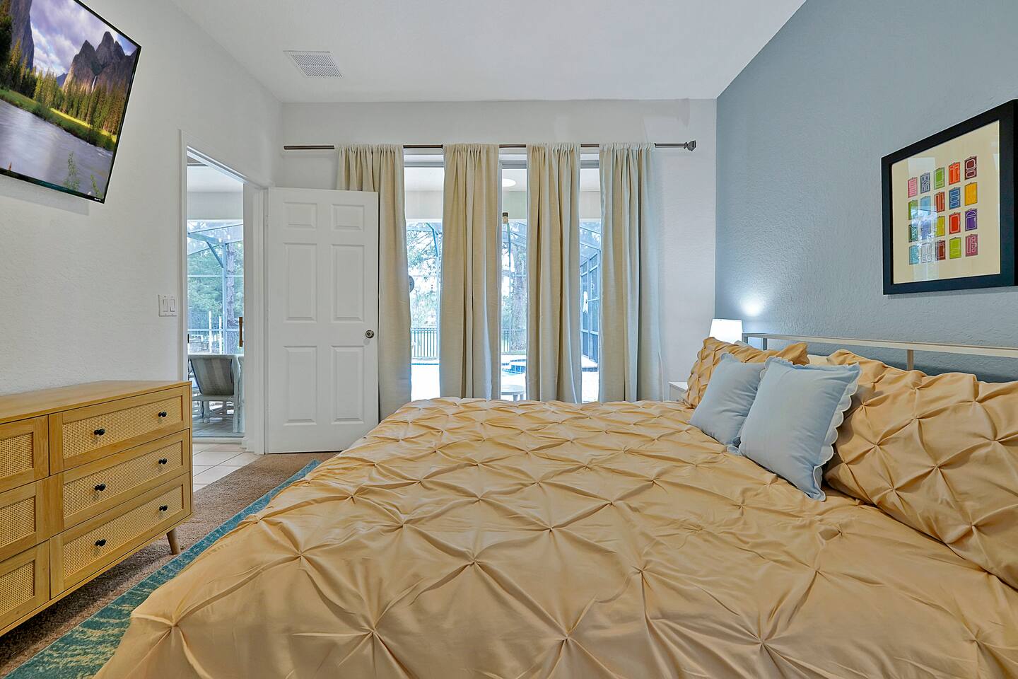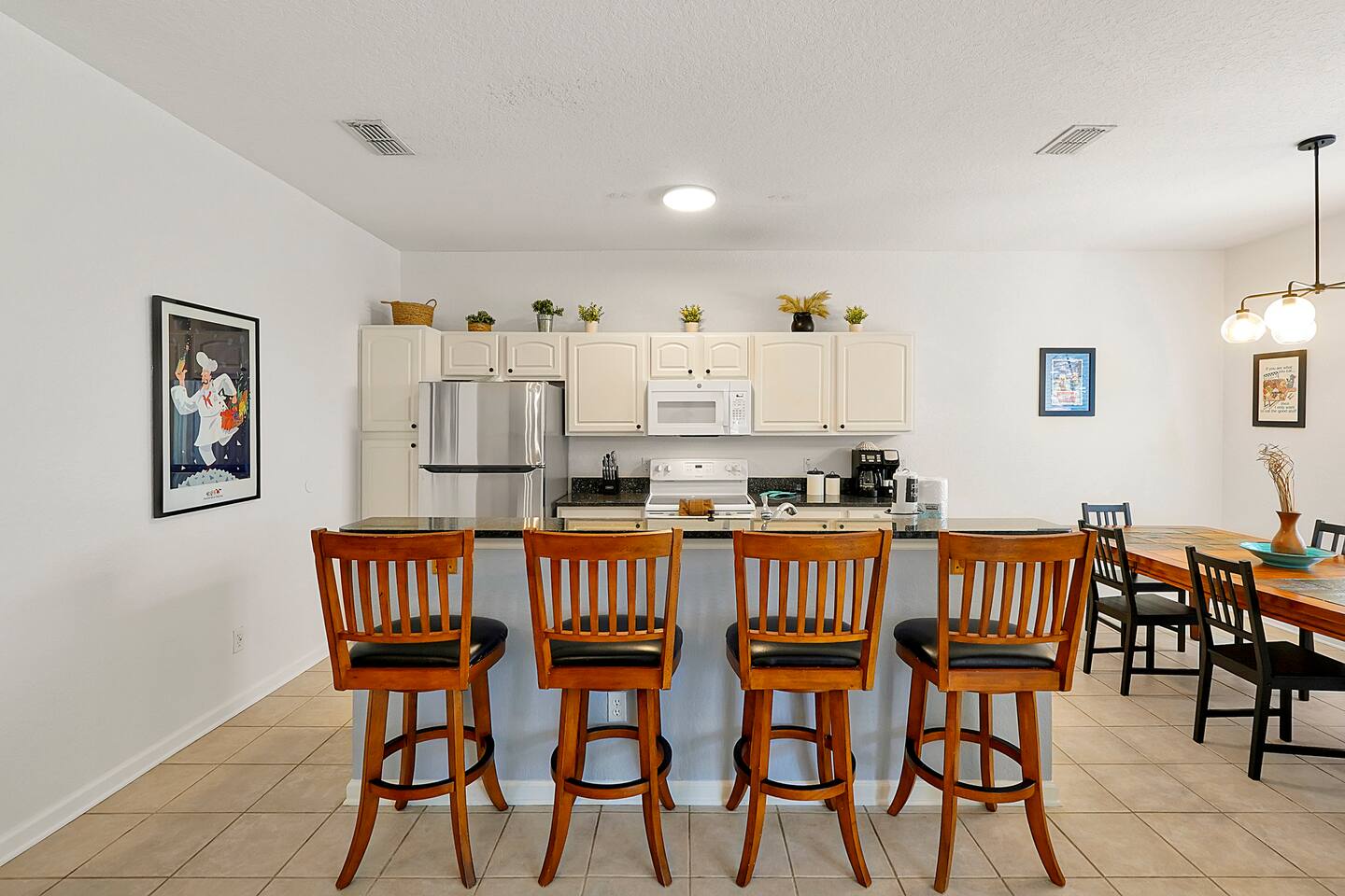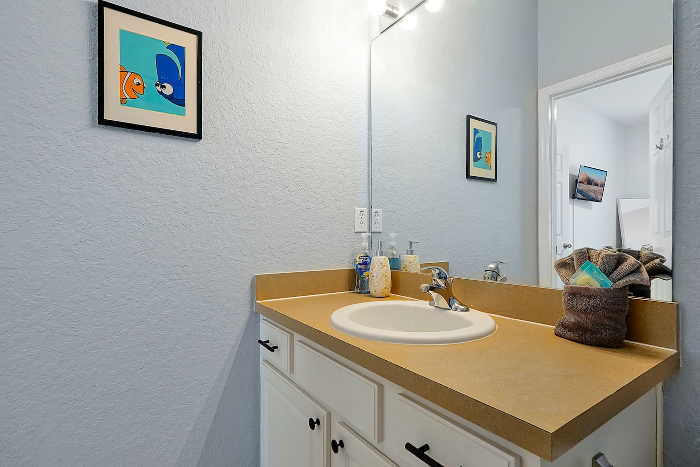 ☆☆ HIGHLIGHTS ☆☆ ✹ Sleeps 8 in a spacious family home ✹ 4 comfortable bedrooms w/ full bathrooms + flat-screen TVs; 2 kings + 4 twins ✹ Essential toiletries provided ✹ Full kitchen w/ modern appliances ✹ Breakfast bar w/ 4 high stools ✹ Bright dining area w/ 6 seats ✹ Spacious living area w/ large flat-screen TV + ample seating ✹ High-speed wifi ✹ Game room w/ full-size pool table, air hockey + foosball ✹ Washing machine + dryer ✹ Private backyard oasis w/ hot tub + sun loungers ✹ Heated Pool (between 8am to 10pm) ✹ Outdoor dining table w/ 6 seats ✹ Family-friendly; travel crib, high chair, kids’ tableware, books, toys + games ✹ Free access to Windsor Hills Resort amenities; clubhouse, pool, water park, gym + more ✹ Free parking for three vehicles ✹ Complete privacy thanks to no rear neighbors ✹ Professional cleaning service available (additional fee applies) ✹ Perfect location w/ easy access to local attractions; short drive to restaurants + groceries Eager to Read More? Here Are A Few Kind Words From Our Previous Guests: “Very happy with the house and loved that the floorplan had a bathroom for each room! Kids loved that each bedroom had TVs ! Cute Disney details- great heated pool for swimming.” –Kelly “We had a great time at Sharmin’s place. Sharmin is very responsive and accommodating. My friends and I do this every year and this has been our favorite space so far. It was extremely clean, all on one level and the privacy and proximity to restaurants and shopping was great. We would definitely book again.” –Lori “Sharmin’s place was beyond what we anticipated. It is in a gated community with access to the community amenities. From door to parking at the Magic Kingdom is less than 15 minutes unless the traffic is backed up. The pool and hot tub were both clean and well kept. Daily trash pick up! Four bedrooms, four bathrooms, a large living/dining/kitchen area. On top of all that, Sharmin is a proactive host who will practically guide you through the process from pre-checkin through checkout. Our next Disney trip will include a stay at Sharmin’s place again.” –Jackie ★★ BEDROOMS ★★ Each bedroom has a private bathroom and a TV for the ultimate privacy and convenience after a full day of exploring Florida’s top attractions. Little ones will adore the Disney-themed bedrooms, with comfortable twin beds for giggle-filled slumber parties. All four bedrooms have ample space to store your belongings so you feel right at home. ✹ Primary Bedroom: King-sized bed + ensuite bathroom ✹ Bedroom 2: King-sized bed + private bathroom ✹ Bedroom 3: 2 twin-sized beds, toys + ensuite bathroom ✹ Bedroom 4: 2 twin-sized beds, toys + full bathroom ✔ Dressers and closets ✔ Flat-screen TV in each bedroom ★★ BATHROOMS ★★ Each bedroom has an attached bathroom; two have a bathtub/shower unit and two have spacious walk-in showers. All bathrooms are squeaky clean, with plenty of fresh towels and complimentary toiletries for you to freshen up comfortably. ✹ Bathroom 1: Ensuite to primary bedroom w/ a huge walk-in shower ✹ Bathroom 2: Full bathroom to second bedroom w/ a bathtub/shower combo ✹ Bathroom 3: Full bath to third bedroom w/ a bath/shower unit ✹ Bathroom 4: Private bathroom to fourth bedroom w/ a walk-in shower ✔ Essential toiletries provided (including shampoo + body wash) ✔ Hair dryer ✔ Fresh towels ★★ KITCHEN & DINING ★★ The spacious kitchen is bright, modern, and fully equipped with everything you need to whip up delicious meals for the whole family. Brew a fresh coffee before tackling the theme park crowds, enjoy a light bite at the breakfast bar, or savor a family meal in the formal dining area. Easy access to the outdoor oasis and a lanai for shelter means you can enjoy outdoor dining anytime. ✔ Fully stocked kitchen w/ modern appliances (including induction refrigerator, microwave + electric stove) ✔ Complimentary coffee bar ✔ Basic cookware + dinnerware (including brand-new pots and pans) ✔ Large dining table w/ seating for 6 ✔ Breakfast bar w/ 4 seats ✔ High chair for kids ★★ LIVING ROOM ★★ A perfect blend of vibrant decor, beautiful natural light, and cozy couches create a comfortable family living space. Wind down from a busy day with a family movie, curl up with a good book, or plan your next adventure. Easy access to the private backyard allows you to enjoy the famous Florida sunshine. ✔ Large flat-screen TV ✔ 2 plush couches ✔ Pack ‘n Play ✔ Tons of books for kids + big kids ★★ GAME ROOM ★★ The fun-filled game room is the perfect place for guests of all ages to enjoy some friendly competition. Shoot some pool, have a foosball match, or try your hand at air hockey. A convenient laundry station is also available so you can freshen up your clothing between excursions. ✔ Pool, foosball + air hockey tables ✔ Full-sized washing machine + dryer ✔ Kids’ toys/games ★★ OUTDOOR SPACE ★★ Surrounded by lush green space, the backyard haven is the perfect retreat from the theme park crowds. Take a refreshing dip in the sparkling, heated pool. Sink into the bubbling hot tub with a cool drink. Relax over cocktails and nibbles, sheltered from the elements beneath the glass lanai. For a change of scenery, head to the resort clubhouse to enjoy the various sports facilities and water parks. ✔ Fenced-in backyard with no rear neighbors ✔ Heated outdoor pool w/ jacuzzi (complimentary heating) ✔ Lounge furniture + outdoor dining table w/ 6 seats ✔ Pool safety fence ✔ Inclusive access to Windsor Hill Resort amenities ★★ ACTIVITIES/ATTRACTIONS ★★ Kissimmee is well-known for its family-friendly attractions, restaurants, and destination shopping, and our home offers both proximity and tranquility. Check out some of the fun waiting on your doorstep: Family-Friendly Attractions ✔ Walt Disney World Resort (3 miles) ✔ Fun Spot Am