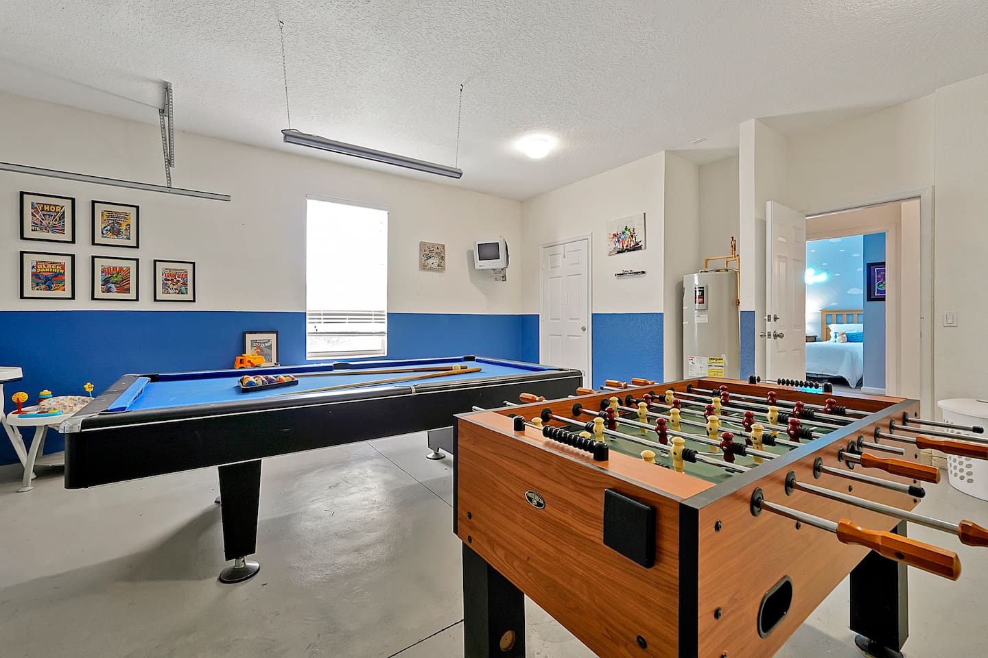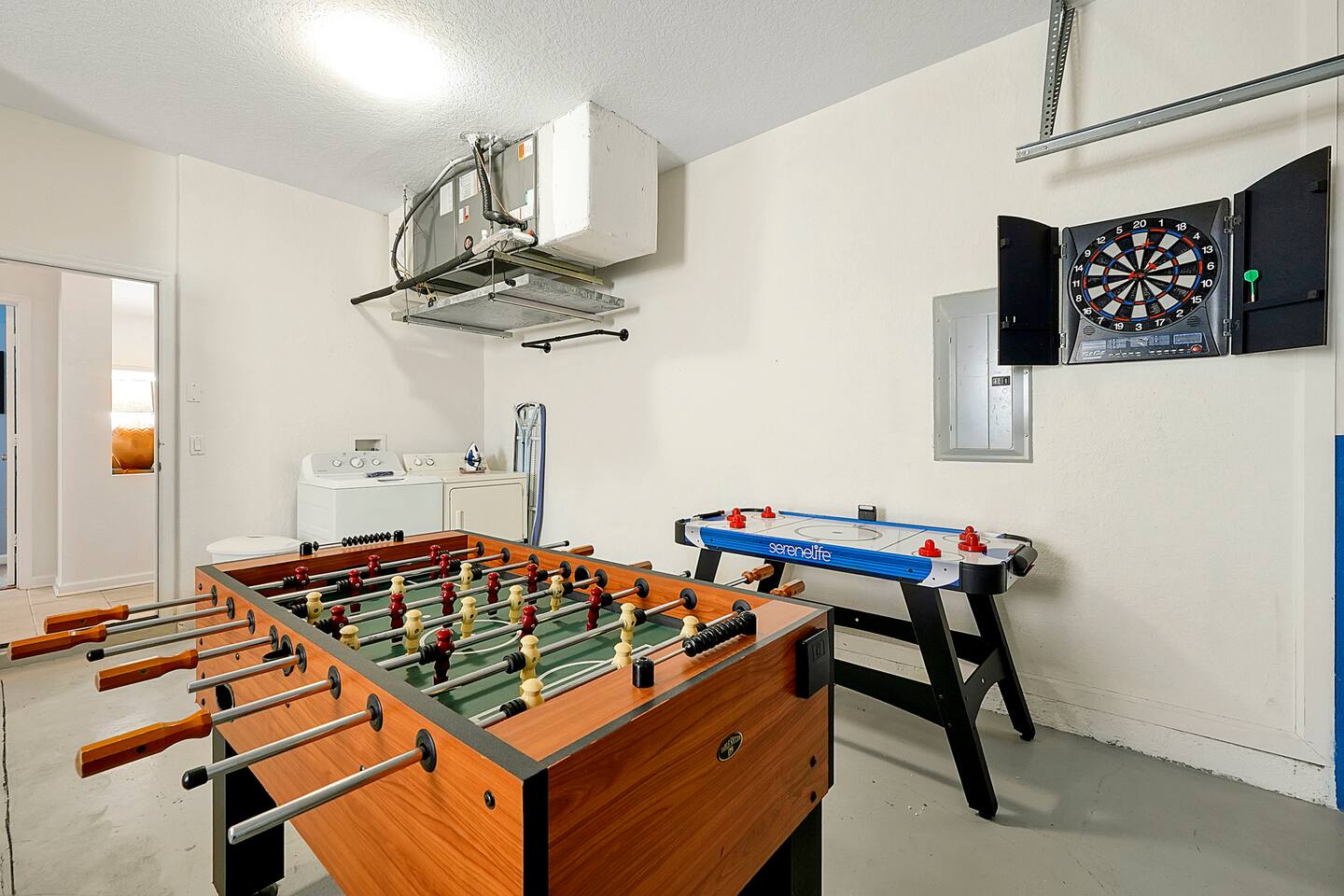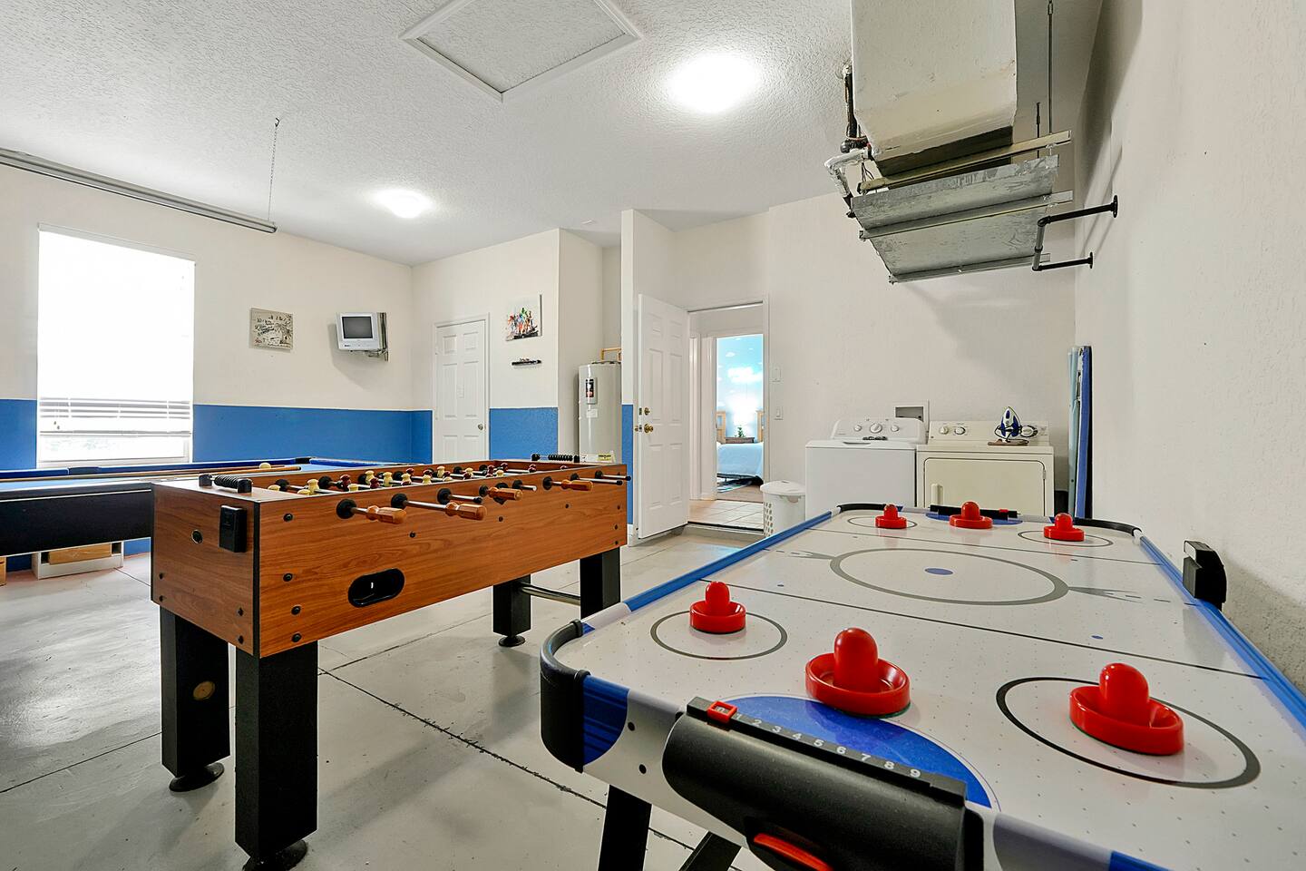 The listing was exactly like it said,so beautiful. We had such a wonderful time with our kids & grandkids. It was definitely convenient to be able to hang out in the nice warm pool & hot tub, while the little ones took naps. We spent most of our time here; swimming, relaxing & just taking in the moments & soaking up the sun. The open field in back made it very quiet and peaceful. The house was very comfortable for us to hang out, for meals and also hang out in the living room in the evening, enjoying time together. The house was perfect with all the necessities throughout in with extra towels, blankets & pillows, etc. The garage area we especially loved, the pool table & air hockey. And even the shed was full of pool toys & other toys for the kids to play with. The clubhouse & waterpark were really nice, you definitely need to get there early, to get a chair. Sharmin was great at keeping in contact. We would definitely stay again