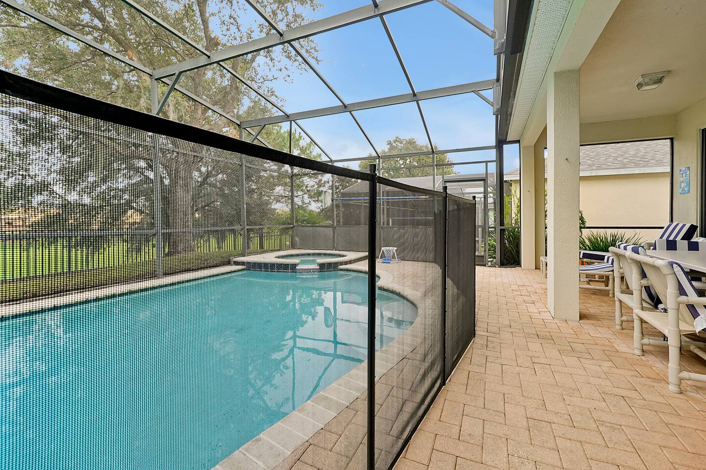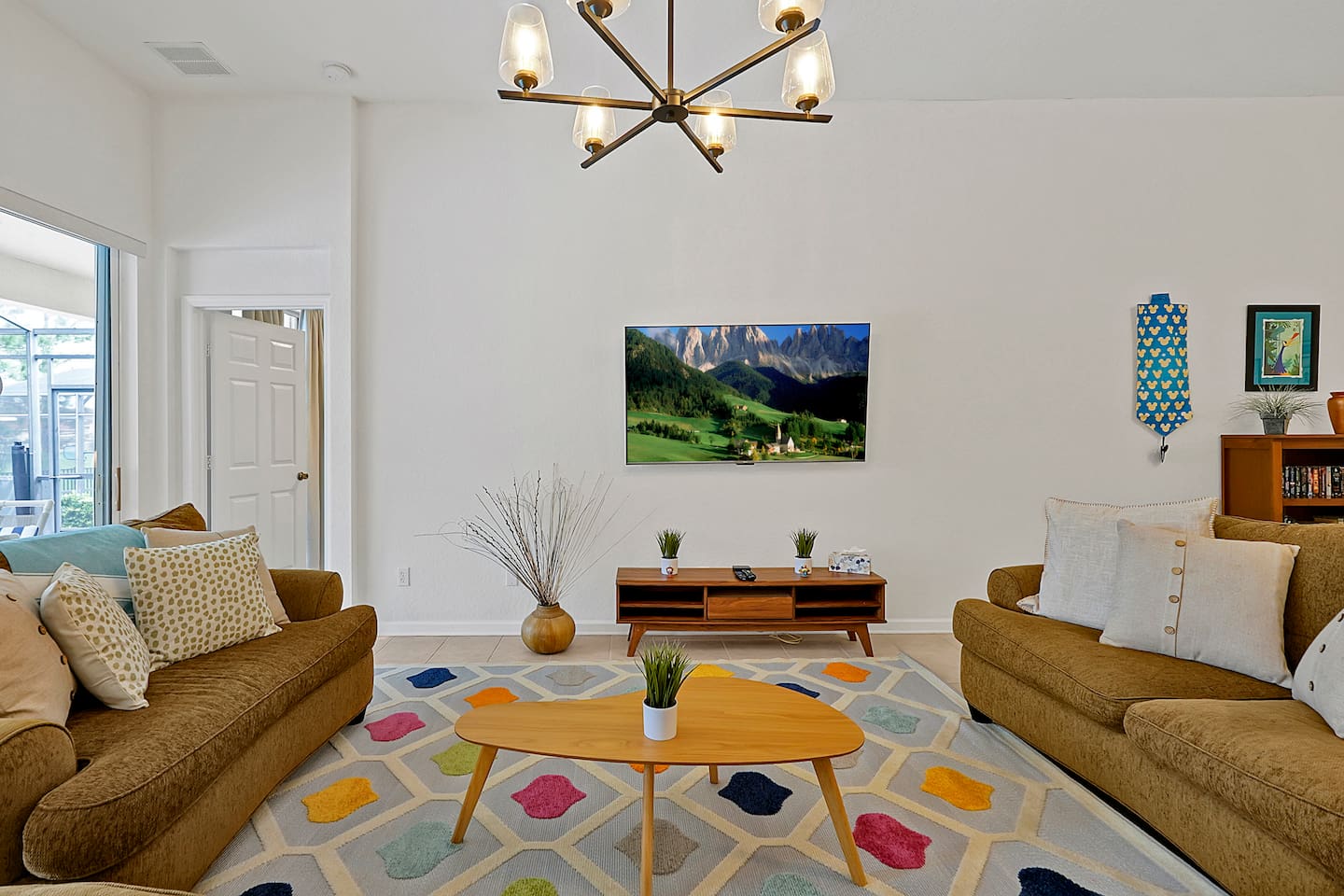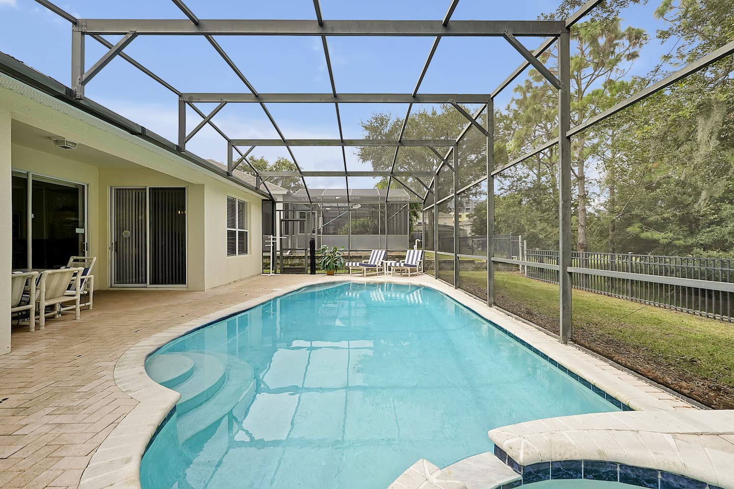 This 4-bed home in Windsor Hills is the ultimate Disney retreat. Just 3 miles from the parks, it offers a private pool and total privacy with no rear neighbors. - Space: Sleeps 8 in 4 bedrooms, each with a private bathroom and TV. - Pool & Spa: Screened-in heated pool and hot tub with a fenced yard. - Family Fun: Game room with pool/air hockey plus resort water park access. - Convenience: Full kitchen, laundry, and parking. Minutes from Disney, dining, and shopping.