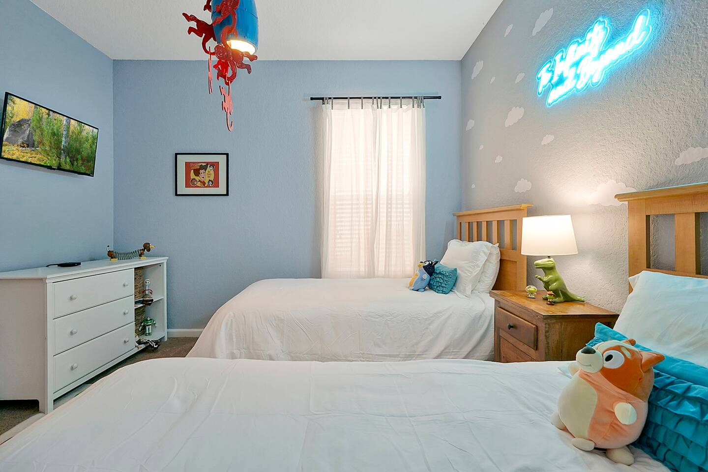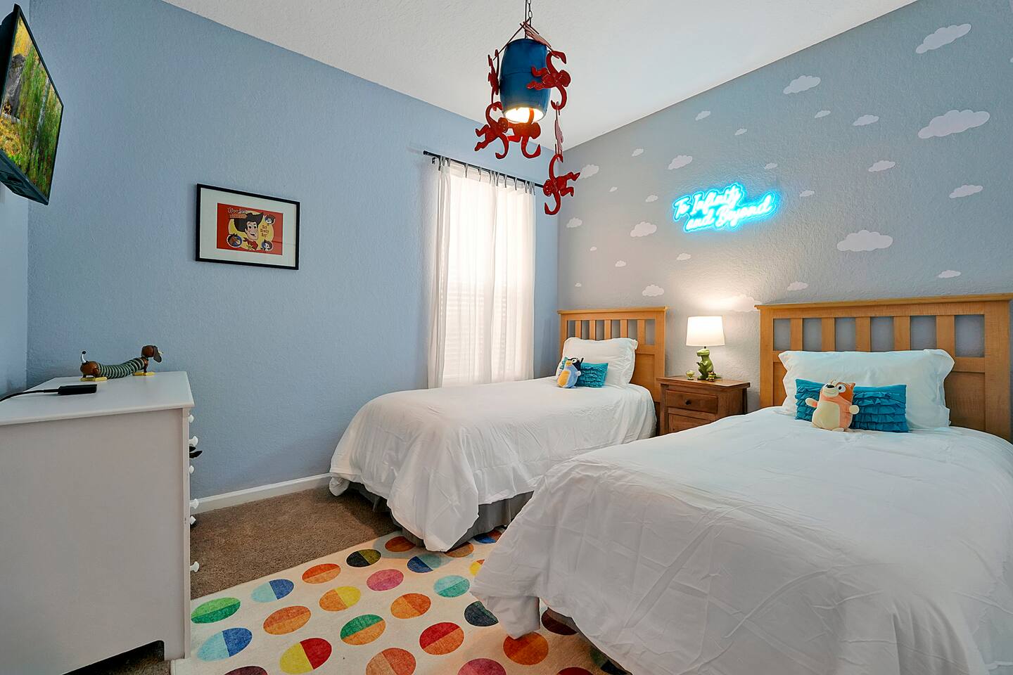 An unforgettable experience to stay within 15 minutes of Disney, relax in the private hot tub, swim in the private heated pool whenever, enjoy the newly upgraded Pixar themed home